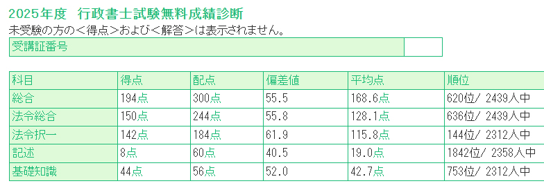 LECの2025年度行政書士試験無料成績診断を受けてみました