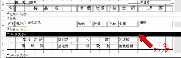 アクセスのレポートの詳細とページフッターの間の余白を埋める方法